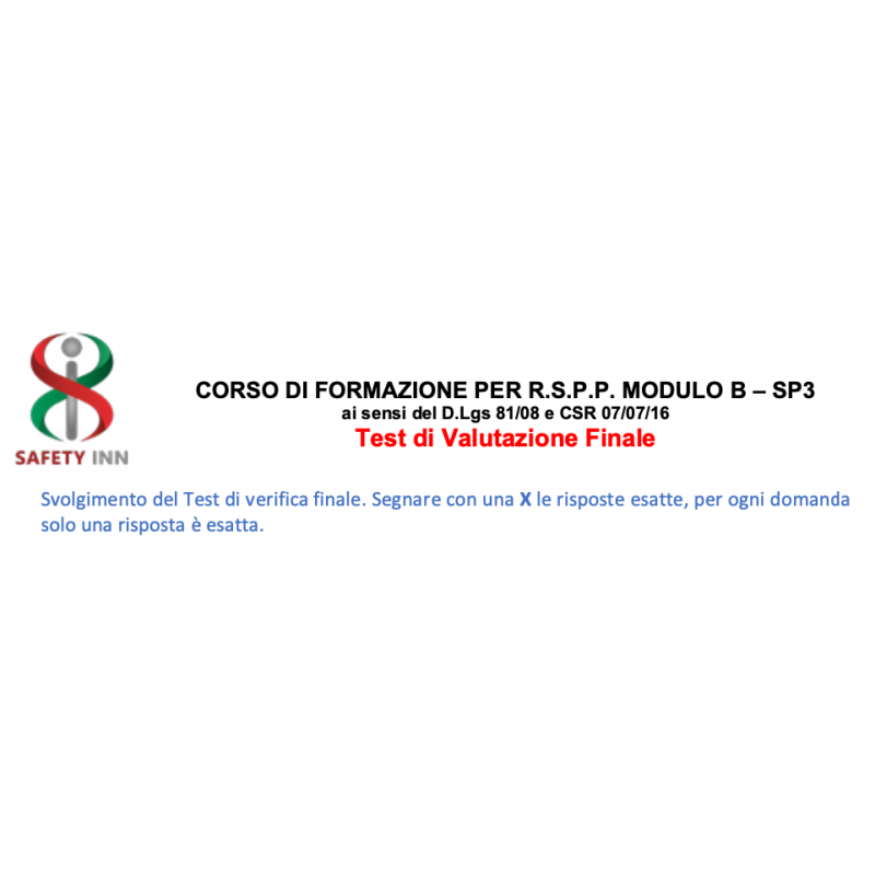 Test Finali Di Valutazione Per Corso di Formazione per RSSP, modulo B SP3 - Sanità Residenziale