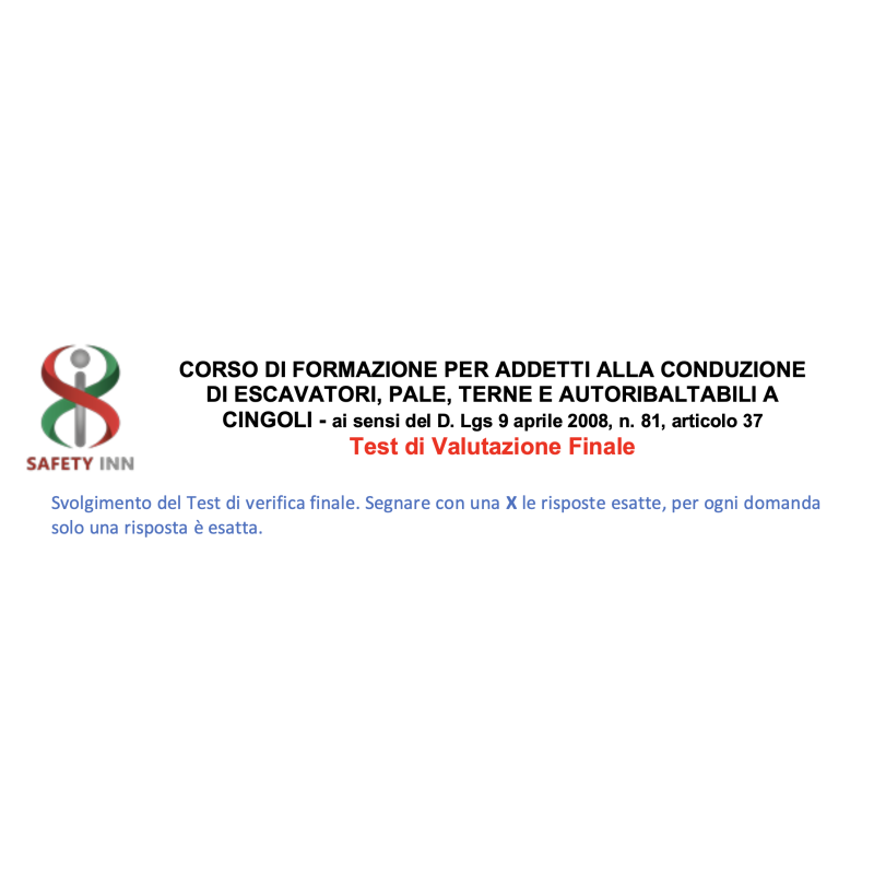 Test Finali Di Valutazione Per Corso di Formazione per addetti all'utilizzo di MMT (Macchine per Movinento Terra), ai sensi del CSR 53 del 22/02/2012