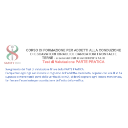 Scheda di valutazione per la parte pratica del corso per addetti all'utilizzo di escavatori idraulici, a ruote e a cingoli, con indicazioni normative, da stampare per ogni discente