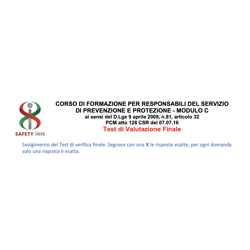 Test Finali Di Valutazione Per Corso di Formazione per RSSP, modulo C