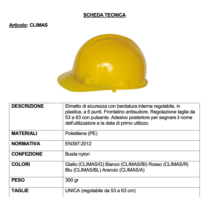 DESCRIZIONE ELMETTO: Elmetto di sicurezza con bardatura interna regolabile, in