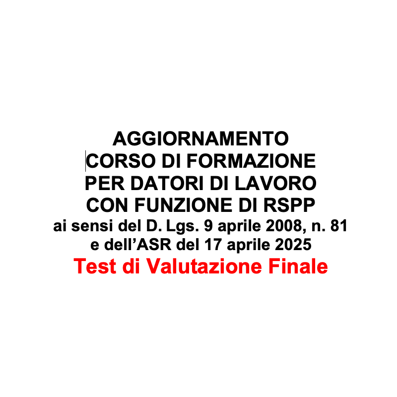Test Finali Di Valutazione Per Corso di Aggiornamento Formazione per Datori di Lavoro che svolgono il compito di RSPP (DLSPP), Aggiornati all'Accordo Stato Regioni 17/04/2025