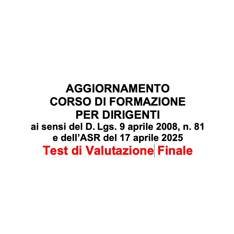 Test Finali Di Valutazione Per Corso di aggiornamento Formazione per Dirigenti, Aggiornati all'Accordo Stato Regioni 17/04/2025