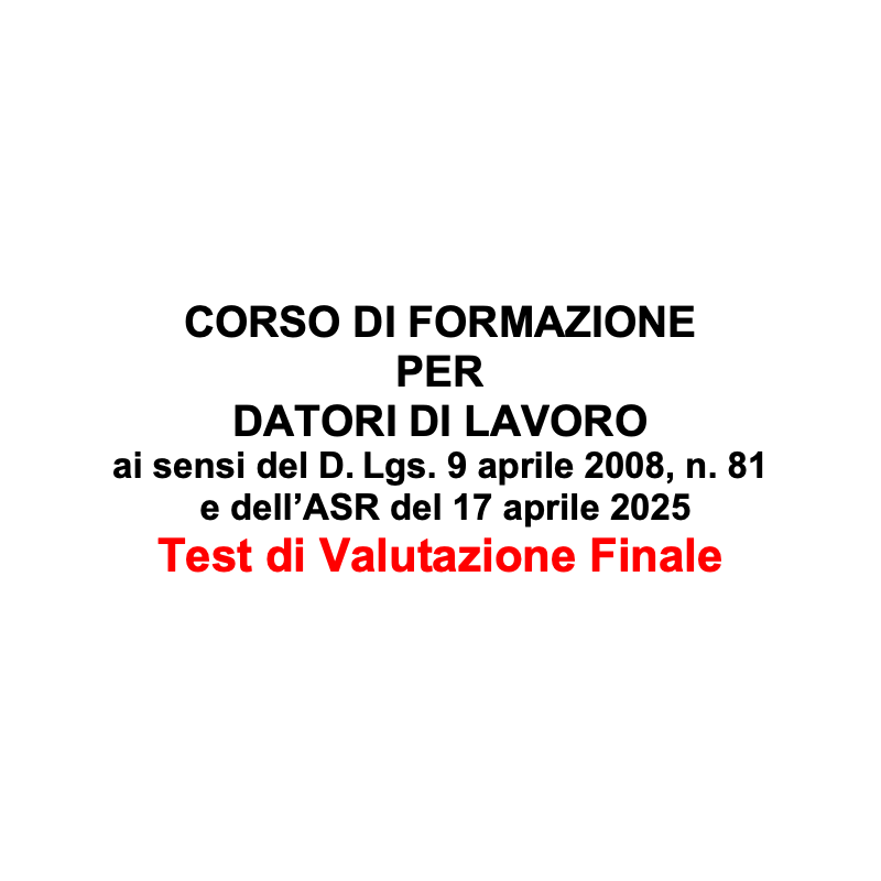 Test Finali Di Valutazione Per Corso di prima Formazione per Datori di Lavoro secondo l'Accordo Stato Regioni 17/04/2025