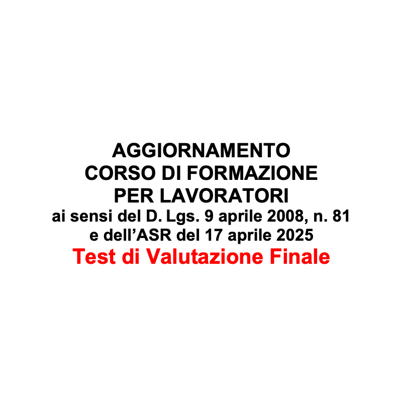 Test Finali Di Valutazione Per Corso di Aggiornamento Quinquennale Formazione per Lavoratori, per tutti i livelli di rischio, Aggiornati all'Accordo Stato Regioni 17/04/2025