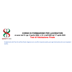 Test Finali Di Valutazione Per Corso di prima Formazione per Lavoratori, parte Generale + Specifica, Aggiornati all'Accordo Stato Regioni 17/04/2025