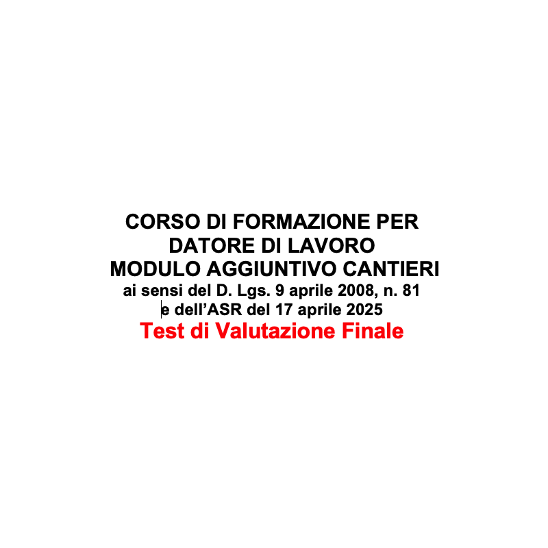 Test Finali Di Valutazione Per il modulo "CANTIERI" aggiuntivo al Corso di prima Formazione per Datori di Lavoro secondo l'Accordo Stato Regioni 17/04/2025