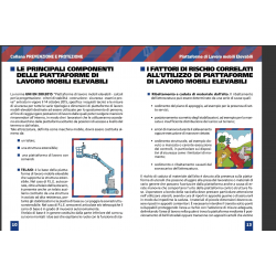 - Introduzione - Le attività di informazione, formazione e addestramento - Le piattaforme di lavoro mobili elevabili - Le principali componenti delle piattaforme di lavoro mobili elevabili - I fattori di rischio correlati all'utilizzo delle piattaforme di lavoro mobili elevabili - I dispositivi di sicurezza delle piattaforme di lavoro mobili elevabili - Raccomandazioni, obblighi e divieti per l'utilizzo in sicurezza delle piattaforme di lavoro mobili elevabili - I Dispositivi di Protezione Individuale - Il manuale d'uso e manutenzione delle piattaforme di lavoro mobili elevabili - Il registro dei controlli relativo alle piattaforme di lavoro mobili elevabili - I controlli e le verifiche cui sottoporre le piattaforme di lavoro mobili elevabili - Le sanzioni a carico dei lavoratori
