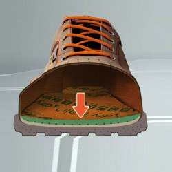 Nuova tecnologia AirTech+TPU-.Skin®, in cui la suola defaticante, permette di avere lo spessore del battistrada decisamente ridotto, flessibile, elastico, con effetto cuscinetto, che ammmortizza l'energia d'impatto della camminata e mantiene il piede fresco e dinamico per tutta la giornata, molto indicata per falegnami, artigiani, addetti all'industria tecnologica avanzata, magazzinieri, carpentieri ecc.