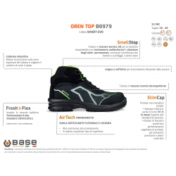 Innovazione, sicurezza, tecnologia a servizio della salute della persona, queste sono le caratteristiche su cui si basa la filosofia Base Protection; le nuove scarpe antinfortunistiche Base OREN TOP S3 sono calzature della gamma Smart Evo; design giovane, moderno e dinamico le Oren Top sono molto apprezzate da chi non vuole rinunciare allla leggerezza di una scarpa metal free mantenendo il proprio stile con un prezzo contenuto.