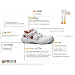 Modernità assoluta, tecnologia estrema per una calzatura dalle caratteristiche uniche; le Scarpe antinfortunistiche Base SKY S1P SRC si presentano sul panorama della sicurezza come uno dei modelli più performanti della collezione Record. Un Sandalo aperto per la maggior freschezza e traspirabilità possibile, senza rinunciare alla sicurezza.