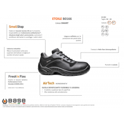 L' Etoile S3 SRC scarpa di sicurezza è un classico della scarpa antinfortunistica, ma realizzato con numerose novità che la rendono estremamente più comoda per chi la indossa. Con l' air-tech incorpora una suola anti-fatica che è flessibile e leggera. Il Plus smell Stop è una fodera in tessuto con trattamento antibatterico permanente contro batteri e cattivi odori causati dall' umidità. Ha una Imbottitura extra nel colletto e la lingua per il comfort. ha anche un' elevata tenuta antiscivolo suola adatta per ogni tipo di pavimento.