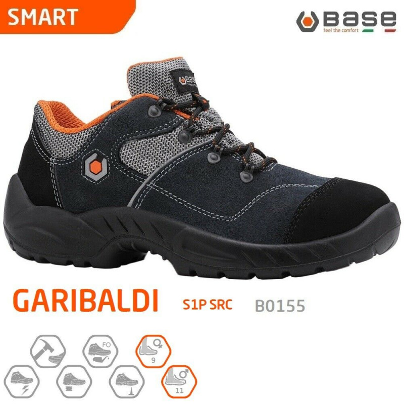 Calzatura di sicurezza bassa, protezione S1P-SRC. La scarpa antinfortunistica Base Garibaldi è l'ideale per tutte le esigenze, con il miglior rapporto qualità/prezzo. Consigliata per lavori nell'edilizia (muratore, impiantista, posatore, rifinitore), per tutti i lavori di industria leggera (legno-carta, tabacco-tessile, abbigliamento-scarpe, logistica-magazzini, trasporti) e per lavori di artigianato (falegname, fabbro).