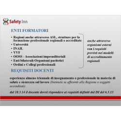 Le slides sono in formato PPSX Power Point e affrontano le tematiche legate allo svolgimento dei compiti dell' RSPP. Il modulo C è specifico per RSPP e comune a tutti i macrosettori ATECO.