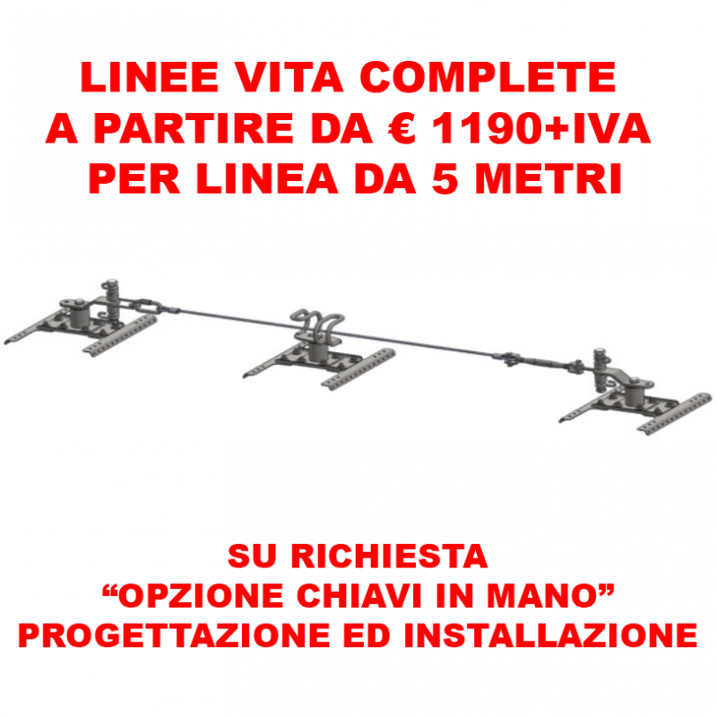 Inoltre è disponibile l'opzione CHIAVI IN MANO! con questo servizio pensiamo a tutto noi, veniamo direttamente in loco, progettiamo, installiamo e certifichiamo la linea vita!