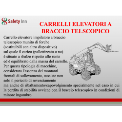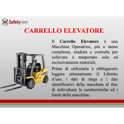 Le slides sono un indispensabile supporto per i formatori che gestiscono corsi per l'abilitazione all'utilizzo agli addetti alla conduzione dei carrelli elevatori semoventi con conducente a bordo, carrelli semoventi con conducente a borso a braccio telescopico e rispettivi aggiornamenti, ed affrontano tematiche legate al corretto utilizzo in sicurezza degli stessi, secondo le disposizioni dell’Accordo Stato Regioni del 22 febbraio 2012 e Art. 73, comma 5 D.Lgs. 81/2008;