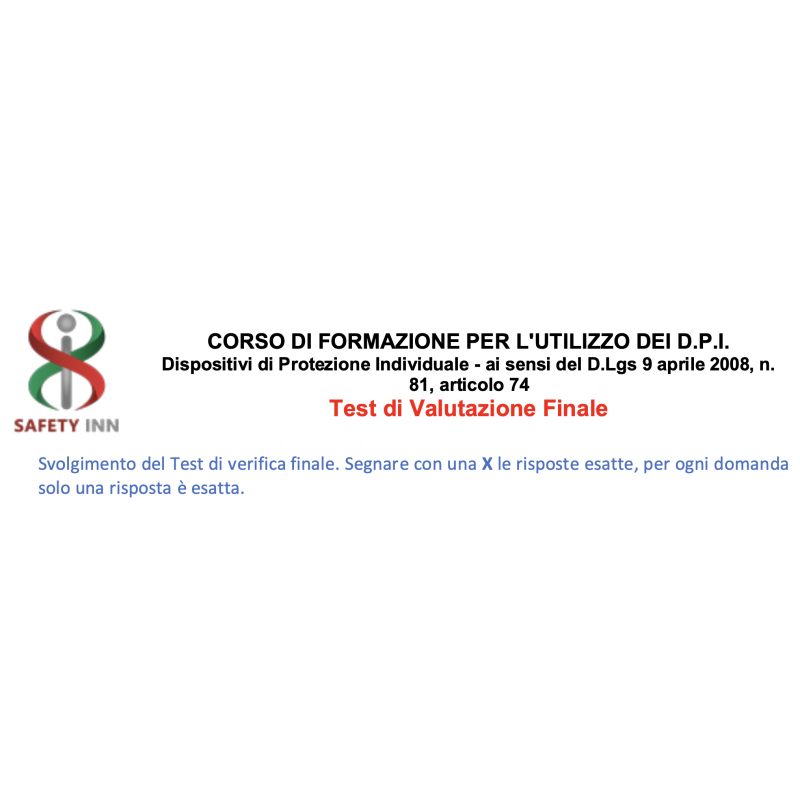 Test Finali Di Valutazione Per Corso di Formazione sui DPI - Dispositivi di Protezione Individuale