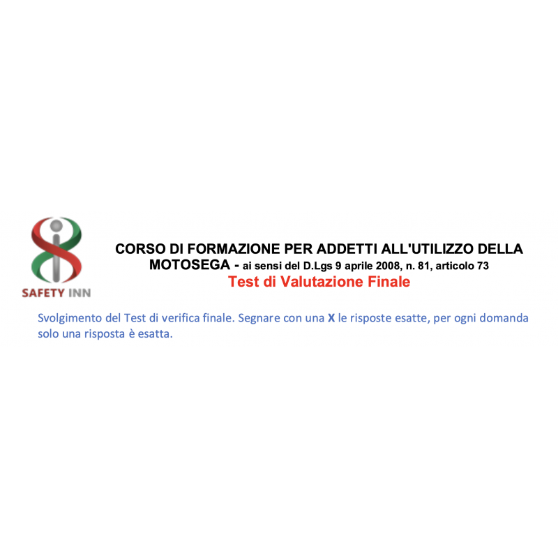 Test finali di valutazione per Corso di Formazione Per I Lavoratori Addetti All'Utilizzo Di Motoseghe Portatili